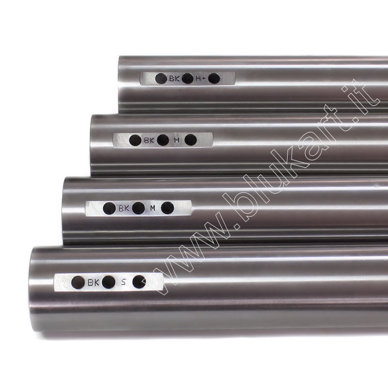 Assale diametro 50mmx1040 spessore 2mm COMPRESO DI BOCCOLA DI RINFORZO CORONA KZ. La nuovissima linea di assali BLUKART nasce dopo anni di attenta ricerca su materiali al fine di ottenere il prodotto che fosse standard e che potesse offrire le massime prestazioni su qualsiasi telaio. Prodotti con i migliori acciai e leghe CrMo gli stessi utilizzati dai maggiori costruttori. Oltre alla scelta dei migliori materiali in commercio una novità importante è la presenza della BOCCOLA DI RINFORZO già installata in fase di produzione. Questo oltre ad un risparmio consente di avere il migliore assetto e tra le altre cose di utilizzare il metro all’interno dell’assale per la misurazione della carreggiata. L’assale è fornito con doppia sede per la trasmissione per essere utilizzato sia sui telai con trasmissione interna (tipo 125 con cambio) dove è già presente la boccola di rinforzo sia sui telai con tiro esterno al telaio (tipo 125 tag KF OK OKJ e 100cc). Nel menù a tendina potrai scegliere le varie durezze.