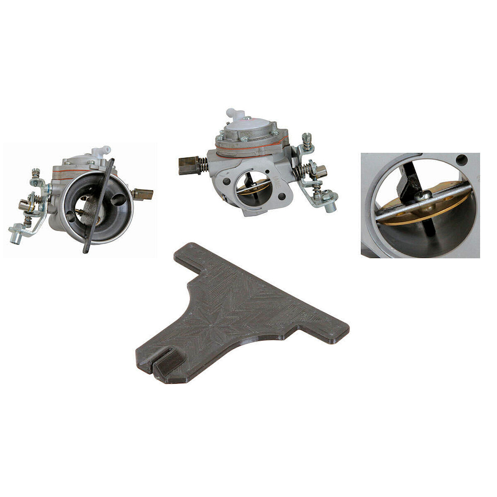 La dima viene utilizzata per regolare la farfalla carburatore in posizione perfettamente orizzontale alla massima apertura. Materiale plastica.