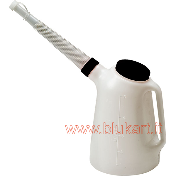 La nostra caraffa graduata con beccuccio flessibile è dotata di doppio tappo di cui il superiore da avvitare. Graduata divisione un litro max 5 litri.