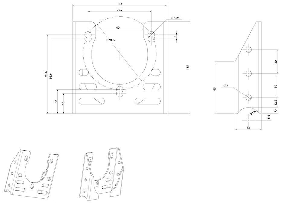 bkt008 - SUPPORTO C” FUSELLO FORO DA 22mm”