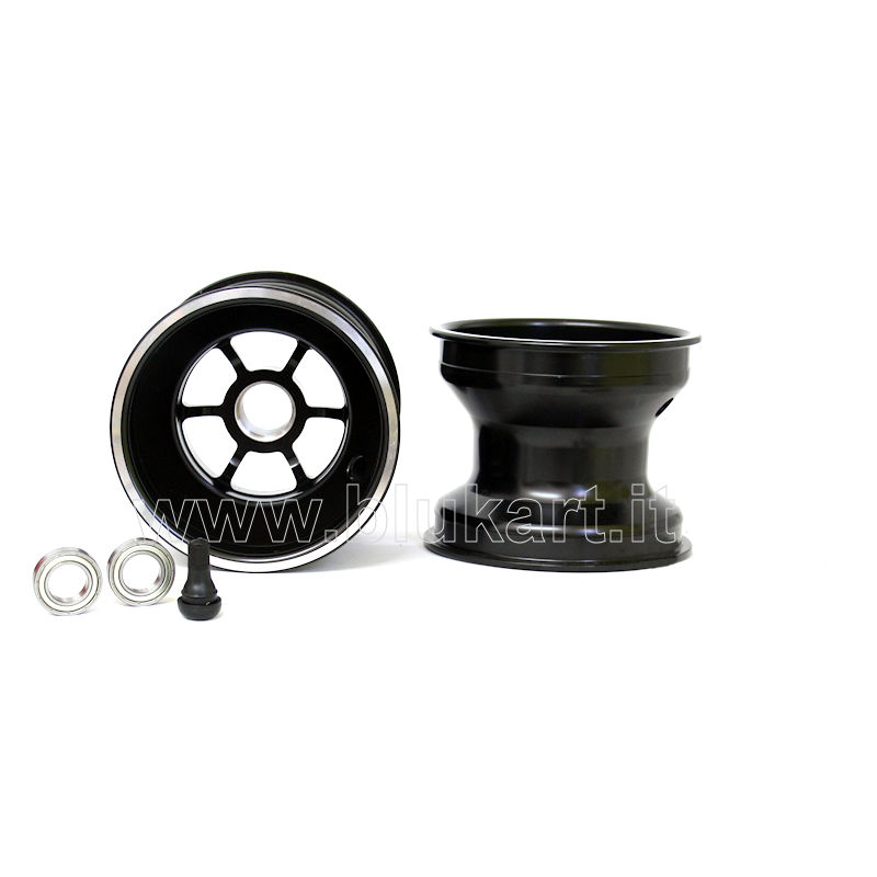 CERCHIO ANTERIORE IN ALLUMINIO A RAZZE NERO MINIKART LARGHEZZA 110mm -completo-