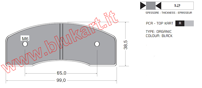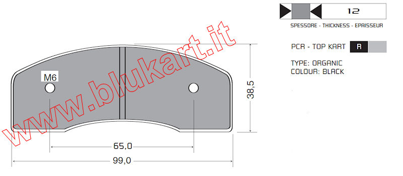 PASTIGLIE FRENO COMPATIBILI PCR-TOP KART (POSTERIORE) SPESS. 12mm SET DA 2 PEZZI
