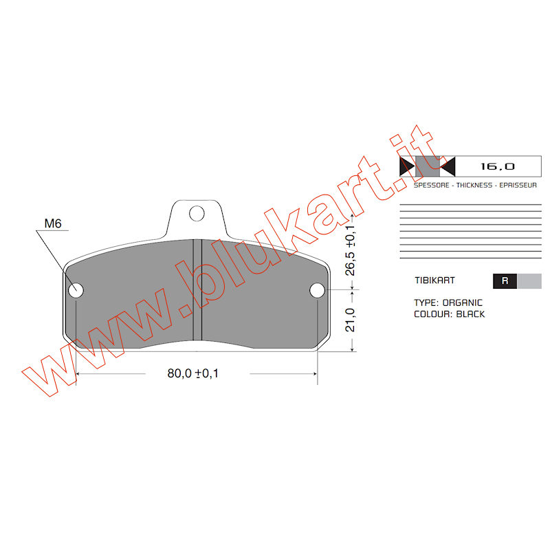 PASTIGLIE FRENO COMPATIBILI TIBIKART (POSTERIORE) SPESS. 16mm SET DA 2 PEZZI