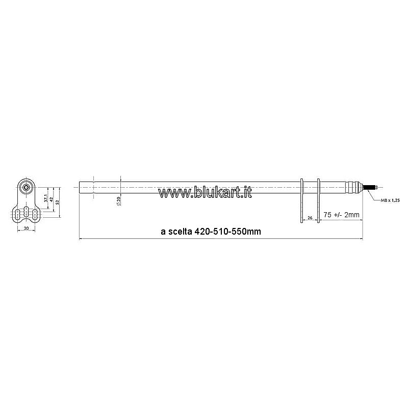 Clicca l’immagine per visualizzare la scheda tecnica. Tre lunghezze disponibili, 42,51 e 55cm circa e può comunque essere accorciato a proprio piacimento. Vite di fissaggio all’uniball m8. Il piantone viene fornito con foro di fissaggio del supporto volante di tipo centrato. Terminale filettato m8. Diametro piantone 20mm.