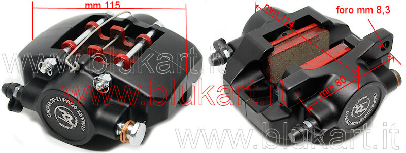 Clicca l’immagine per visualizzare tutte le misure. Fornita completa di pastiglie come in foto. Adatta a dischi da 18mm di spessore (ma20).
