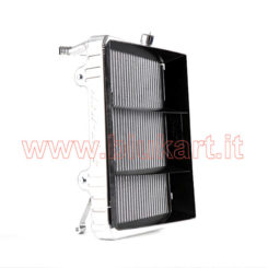 La forma a sviluppo orizzontale e a sagoma curva, risulta ideale per l’installazione esattamente dietro il sedile del pilota a cui viene ancorato tramite dei gommini antivibranti (forniti con il radiatore…NON NECESSITA DI ATTACCHI)