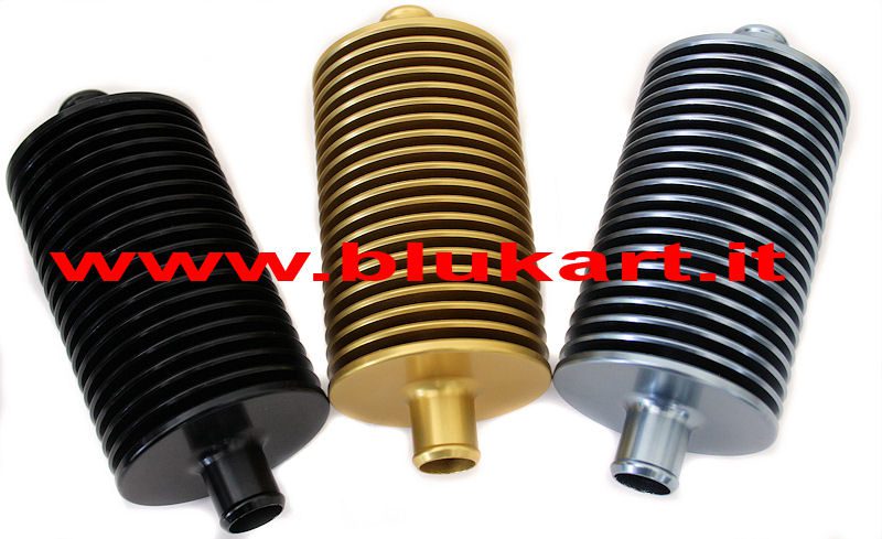 Lo scambiatore di calore in ergal non è altro che un mini” radiatore. Consente infatti in tutti quei casi di elevate temperature del liquido di raffreddamento di abbassare di diversi gradi la temperatura. La posizione in cui va inserito è sul tubo che dalla testa porta al radiatore semplicemente tagliando il tubo eliminando la parte necessaria e fissandolo con due fascette tipo bk550 (in questo stesso gruppo) . La temperatura si abbasserà tanto di più quanto più sarà esposto al flusso d’aria lo scambiatore. Disponibile anodizzato ORO NERO TITANIO ROSSO e BLU