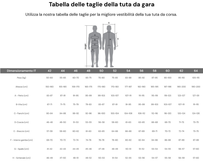 scheda tecnica per la scelta della taglia tra le immagini